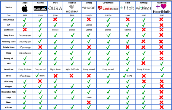 There are hundreds of wearable devices and mobile apps available for measuring individual biometric values. They are categorized by function and by body parameters including wristwatches, eyewear, clothing, activity tracking, etc. Individuals can typically upload their data into their own device reporting software or a wellness portal to track their overall health. These devices along with AI can be incorporated into a comprehensive wellness program, Emotional Assistance Program ( EAP ) and support remote patient monitoring for high-risk case management services.