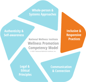 By developing the competencies within the “Inclusive and Responsive” domain of the NWI Wellness Promotion Competency Model, professionals and champions are better equipped to provide guidance, support, and instruction to diverse groups by guiding them through the active process of learning to make informed, achievable, and positive wellness choices that align with their cultures and values.